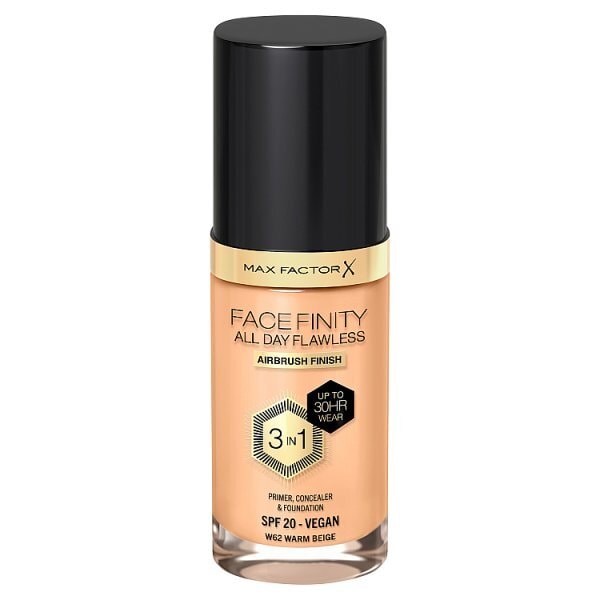 for a flawless longlasting look theres max factor facefinity all day flawless foundation now with climate proof protection this 3in1 liquid combines a primer concealer and foundation for up to 30 hours of wear the lightweight breathable vegan formula conceals redness and covers imperfections this softfocus airbrushed finish foundation has climateproof protection waterproof heatproof and humidityproof it has spf20 protection from damaging uva uvb rays while also protecting against external agressors such as blue light and pollution