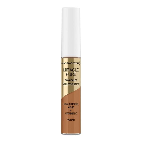 believe in miracles inspired by skincare mastered by max factor new miracle pure concealer is clinically proven to care for skin while you wear it the lightweight formula contains hyaluronic acid vitamin c and peptides it gives medium natural coverage and works perfectly on the face and under the eyes providing creaseless all day gentle coverage illuminating brightening and giving 24hydration clinically and dermatologically tested suitable for sensitive skin with a super soft flexible and precise applicator available in 8 shades and designed to work in harmony with max factors miracle pure foundation