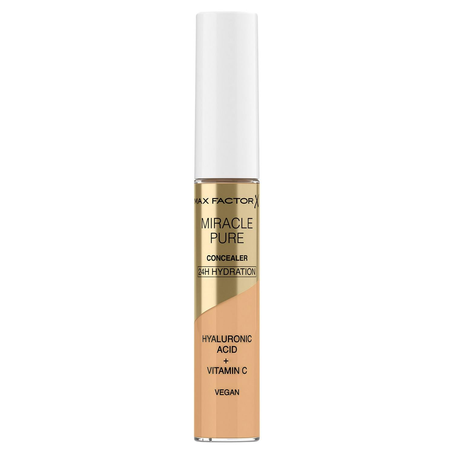 Read MoreBelieve in miracles! Inspired by skincare, mastered by Max Factor, new Miracle Pure Concealer is clinically proven to care for skin while you wear it. The lightweight formula contains hyaluronic acid, vitamin C and peptides. It gives medium, natural coverage and works perfectly on the face and under the eyes, providing crease-less, all day gentle coverage - illuminating, brightening and giving 24-hydration. Clinically and dermatologically tested, suitable for sensitive skin; with a super soft flexible and precise applicator. Available in 8 shades and designed to work in harmony with Max Factor's Miracle Pure foundation.