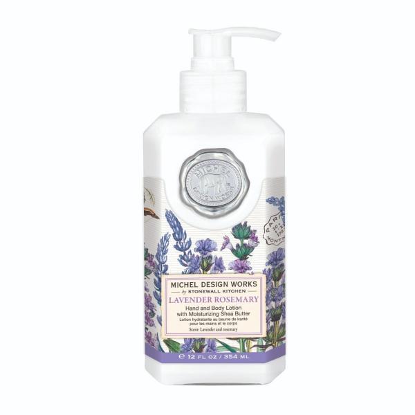 Scent: Lavender Rosemary Elegant 354ml pump bottle Enriched with shea butter and aloe Deeply moisturising and soothing Suitable for all skin types Cruelty-free Treat your skin to everyday luxury with Michel Design Works Hand and Body Lotions. Each lotion is enriched with shea butter, aloe, and botanical ingredients to hydrate, nourish, and soften—even the driest skin. Whether you prefer floral, citrus, herbal, or fresh coastal scents, this collection offers a beautifully crafted fragrance to suit every mood. Perfect for gifting or self-care, each lotion is elegantly packaged in a generous 355ml bottle. Made in the USA and never tested on animals.