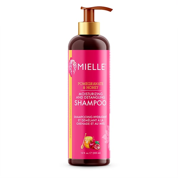 tackle wash day with the pomegranate honey moisturising and detangling shampoo this rich lathering hydrating formula delivers ultimate slip to effortlessly cleanse and detangle curls and coils as the essential first step in mielles powerful styling system it cleanses without stripping away moisture leaving hair soft clean and perfectly prepped for defining