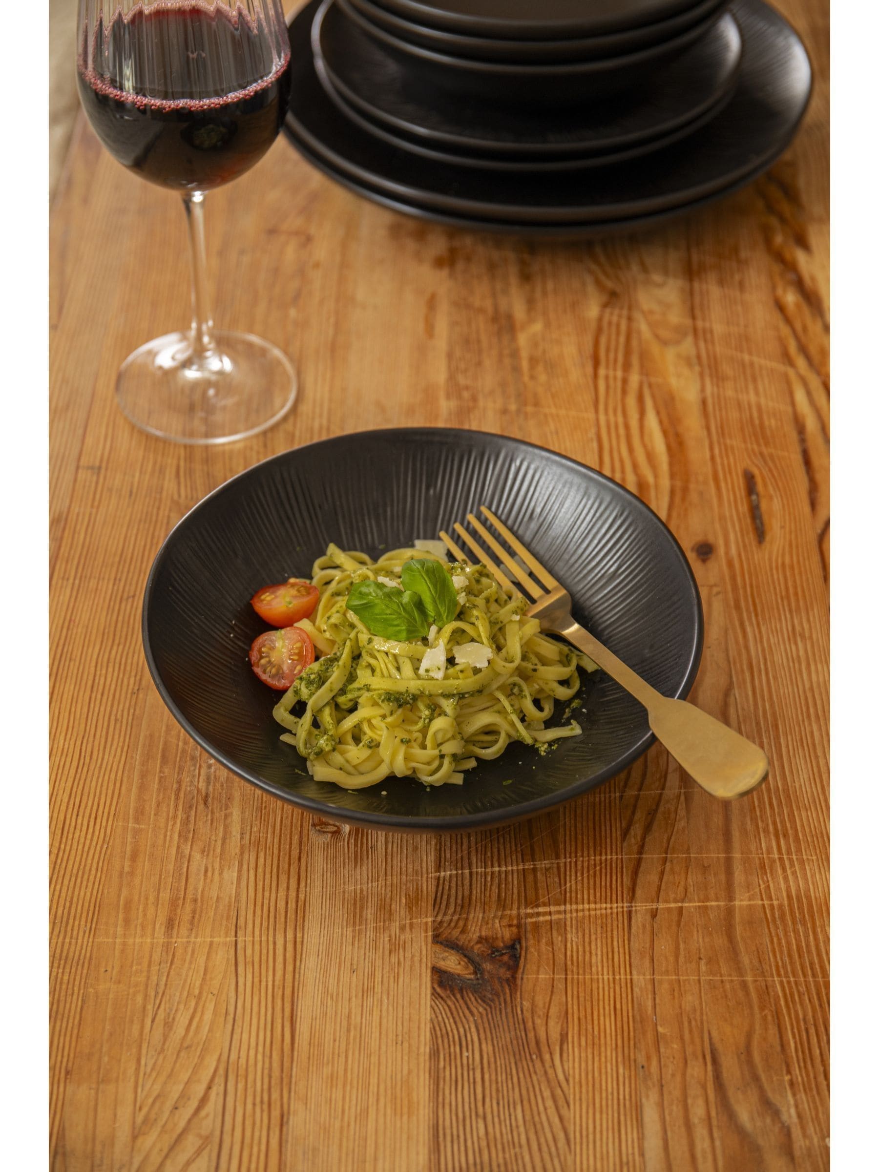 • Includes 4 x black pasta bowls from the Mikasa Jardin Midnight collection • Designed in the UK, with an inky black glaze and debossed texture inspired by the natural world • Sturdy stoneware makes them suitable for special occasions or daily dining • Microwave and dishwasher-safe for easy reheating... Read More