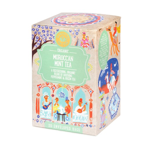 This tea offers a refreshing taste by blending soothing peppermint with organic green tea. It is crafted from quality ingredients and packed in a straightforward cardboard box format. This blend provides a gentle infusion suitable for daily enjoyment.