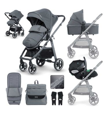 • Comes complete with a reclining infant carrier/car seat for secure transit.