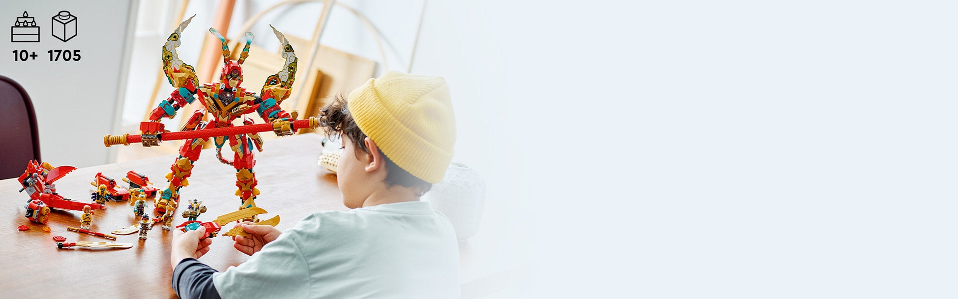 Get kids aged 10 and up excited about classic legends with this brick-built LEGO® Monkie Kid™ Monkey King Ultra Mech (80045). The set recalls the original Monkey King Warrior Mech, with updated features and functions to extend play, including rear rocket boosters, a new armor design, newly designed Golden Sight power with a light brick, a staff and other weapons that can be transformed into a jet.