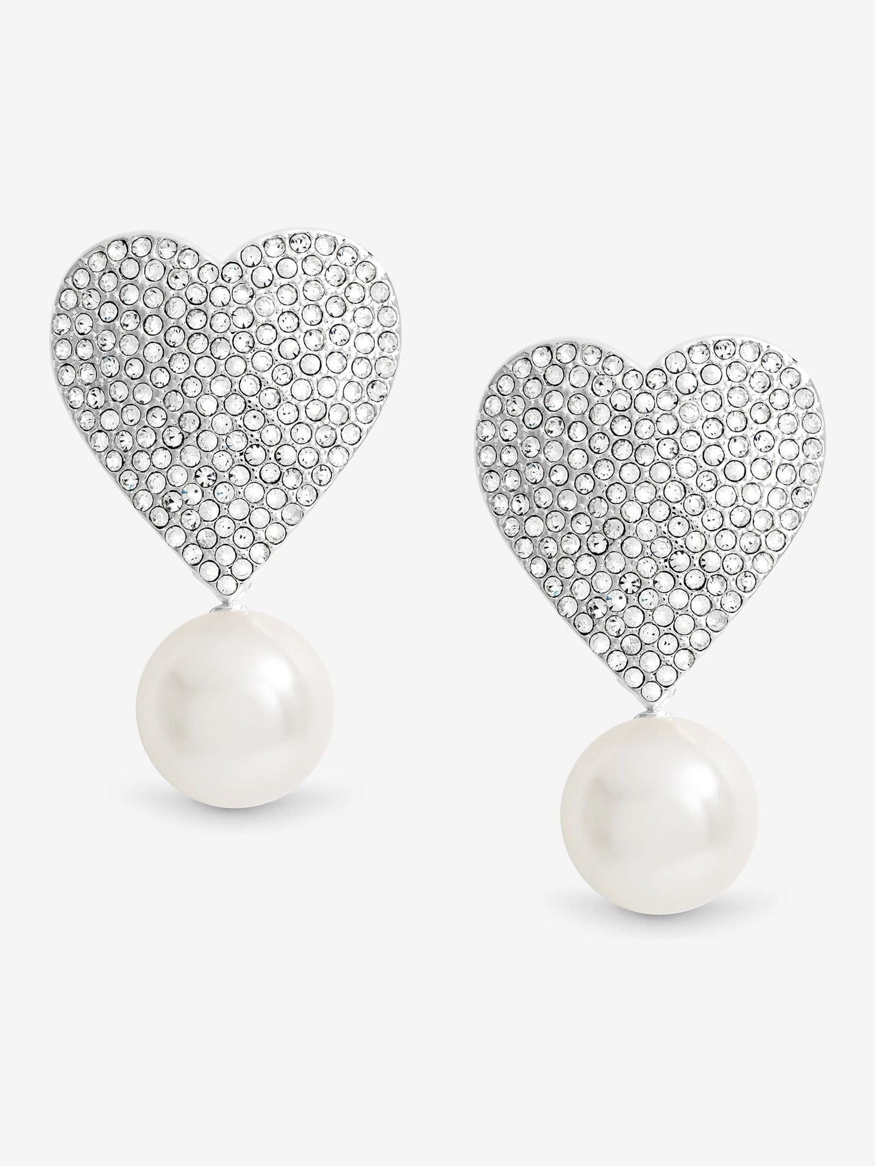 Mood Silver Tone Crystal Heart With Pearl Drop Statement Earrings