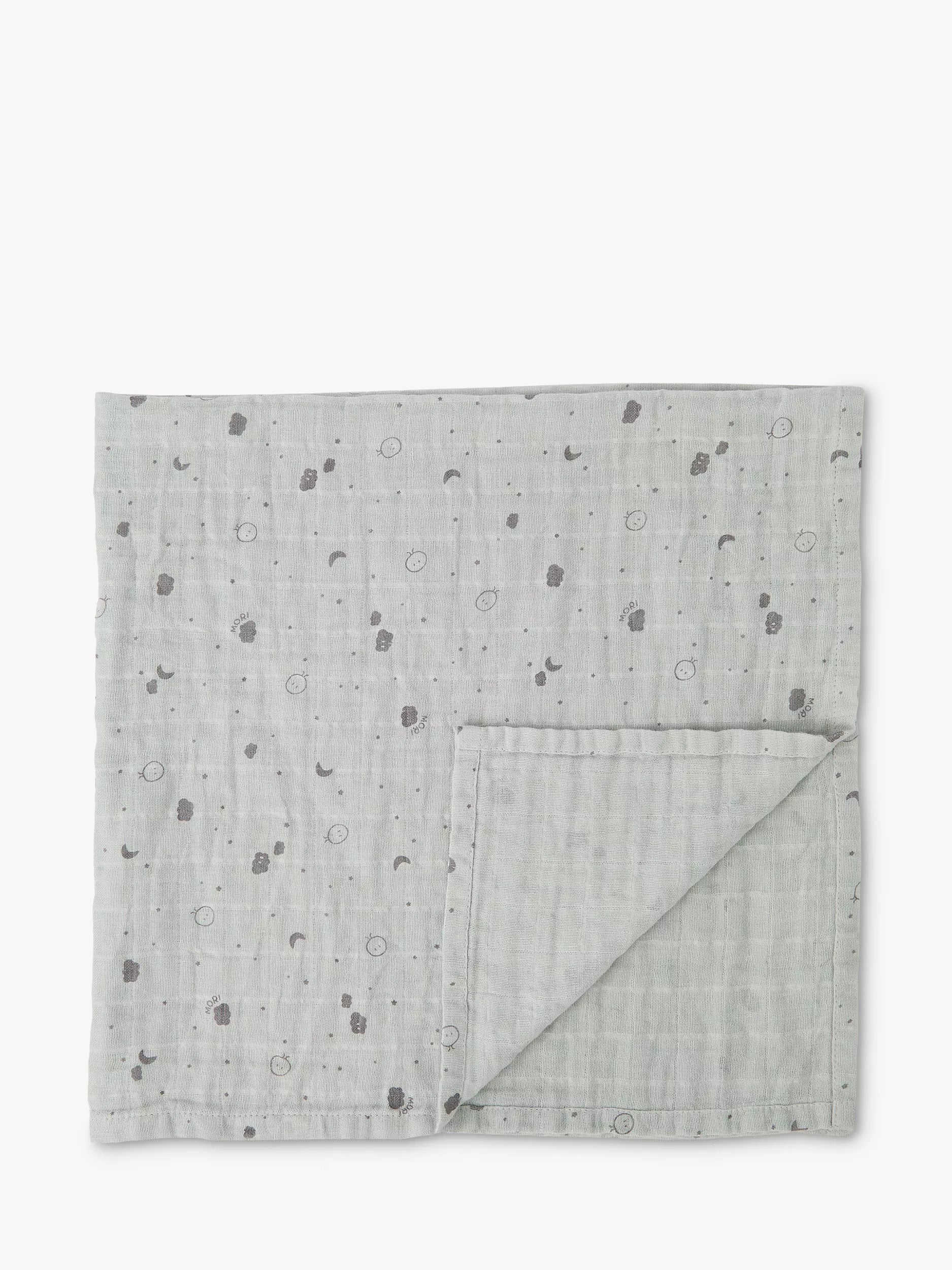 This large muslin is essential for every parent. Crafted in breathable organic cotton, it has a myriad of uses such as swaddling your little one, burp cloth or a comforting wearable blanket. It is completed with the brand's signature MORI print.