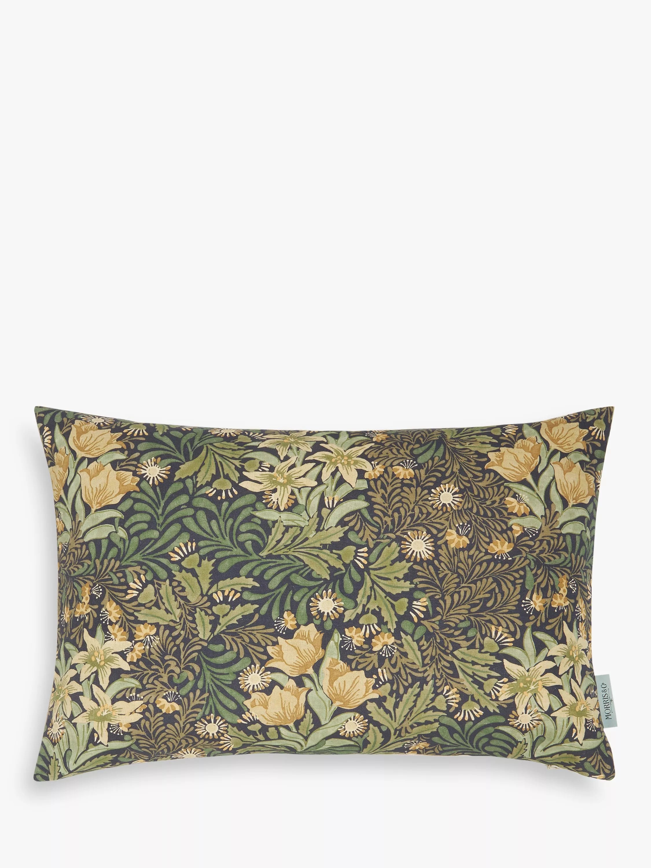 Bring the beauty of a William Morris garden to your home with this exquisite rectangular cushion. Its rich indigo design, a registered pattern from 1877, adds a touch of timeless elegance to any space. Perfect for adding a sophisticated accent to your living room or bedroom.