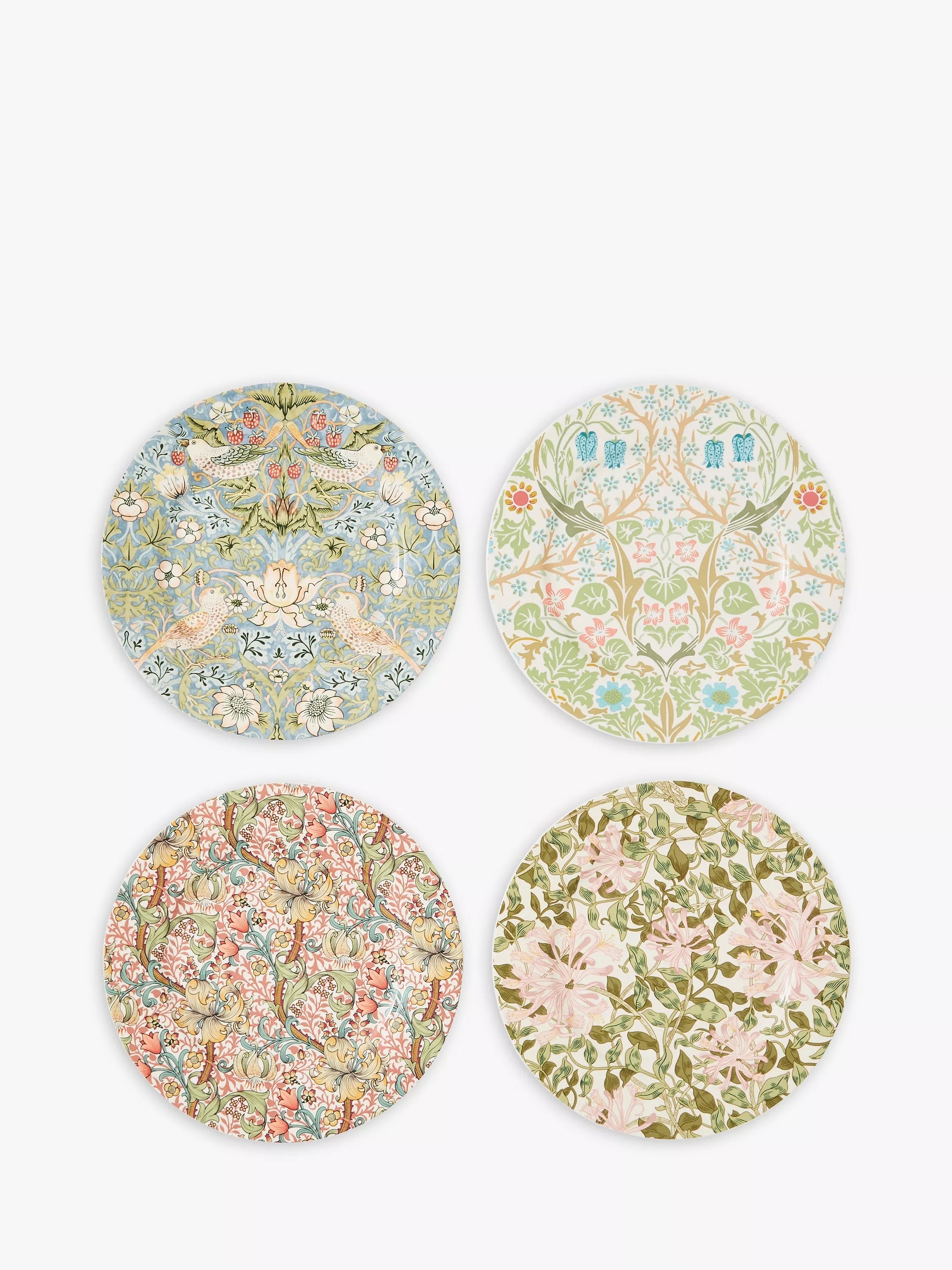 A gift-boxed set of porcelain cake plates inspired by four Morris & Co. heritage prints, brought to life by Spode pottery. From the archive of Arts and Crafts artist and designer William Morris, the prints are Strawberry Thief, Honeysuckle, Blackthorn and Golden Lily.