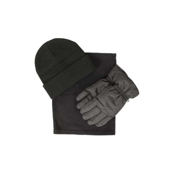 This Mountain Warehouse set provides essential protection against cold weather conditions. It combines a hat, gloves, and a matching scarf in one comprehensive package for convenience. The fabric construction features insulating properties designed to help maintain crucial warmth when outdoor temperatures drop.