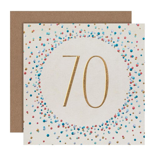 Read MoreCelebrate an amazing seventieth birthday full of laughter and friendship, with this amazing birthday card from M&S. 100% plastic free, fully recyclable and printed on high-quality board, this card features stunning pearlescent gold, silver, pink and blue foil details, the number 70, embossed elements, and comes complete with a co-ordinating M&S branded, brown Kraft envelope.