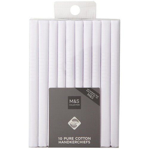 Read MoreMade from 100% cotton, M&S' pack of ten handkerchiefs feature a plain weave pattern and are soft to the touch and gentle on noses.