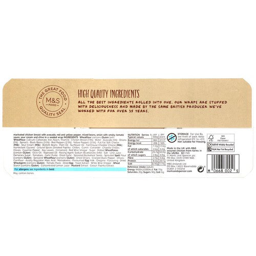 Enjoy the flavourful M&S Chicken Fajita Wrap for a quick and satisfying meal solution. This prepared wrap combines several savoury elements ready to eat straight from the packaging. It offers a balanced taste experience perfect for a convenient lunch or light dinner.