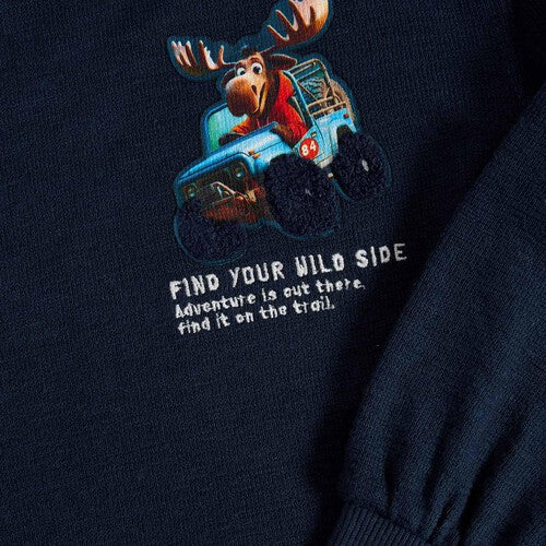 This cotton-rich top is a fun addition to their weekend wardrobe. Regular fit, with comfortable elasticated cuffs. Fun chest graphic features a moose in an off-road vehicle with slogan 'Adventure is out there. Find it on the trail'.