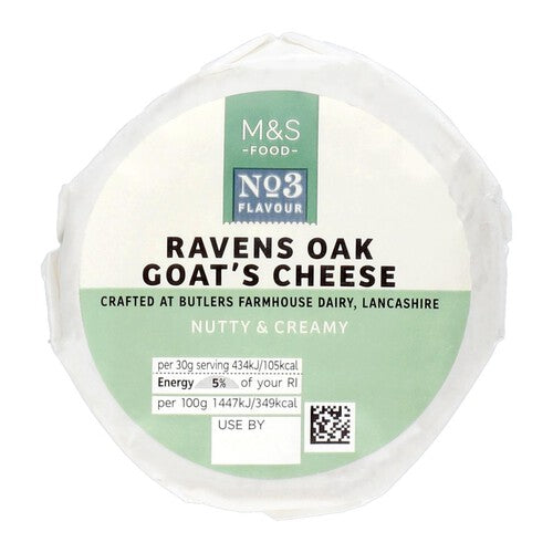 Discover the excellent texture and taste of M&S Ravens Oak Goats cheese. This artisanal product delivers a satisfyingly nutty profile combined with a smooth, creamy finish, making it perfect for gourmet enjoyment. It is consistently crafted to ensure high quality in every block you purchase.