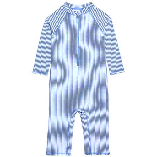 This MS All In One is specifically designed for comfort and ease during days spent at the beach. Featuring a classic ticking striped design, this garment offers a stylish nautical look for young wearers.