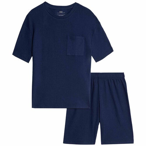 These MS shorts are crafted from a soft, cotton-blend waffle fabric, ensuring cosy comfort for nighttime wear. Designed with a regular fit, this piece complements the matching top for a complete set. The short-sleeved top features a convenient patch pocket on the chest for detail. The shorts include a functional, stretchy elasticated waistband for ease of dressing.