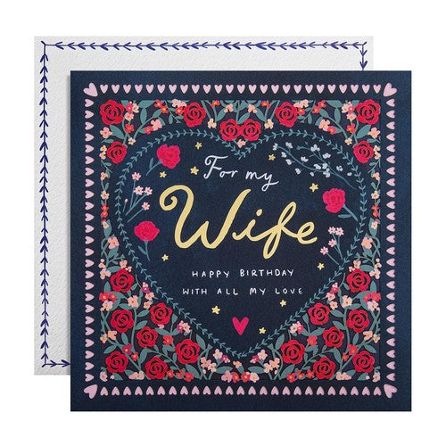 This premium Wife birthday card offers beautiful craftsmanship suitable for celebrating your wife.
