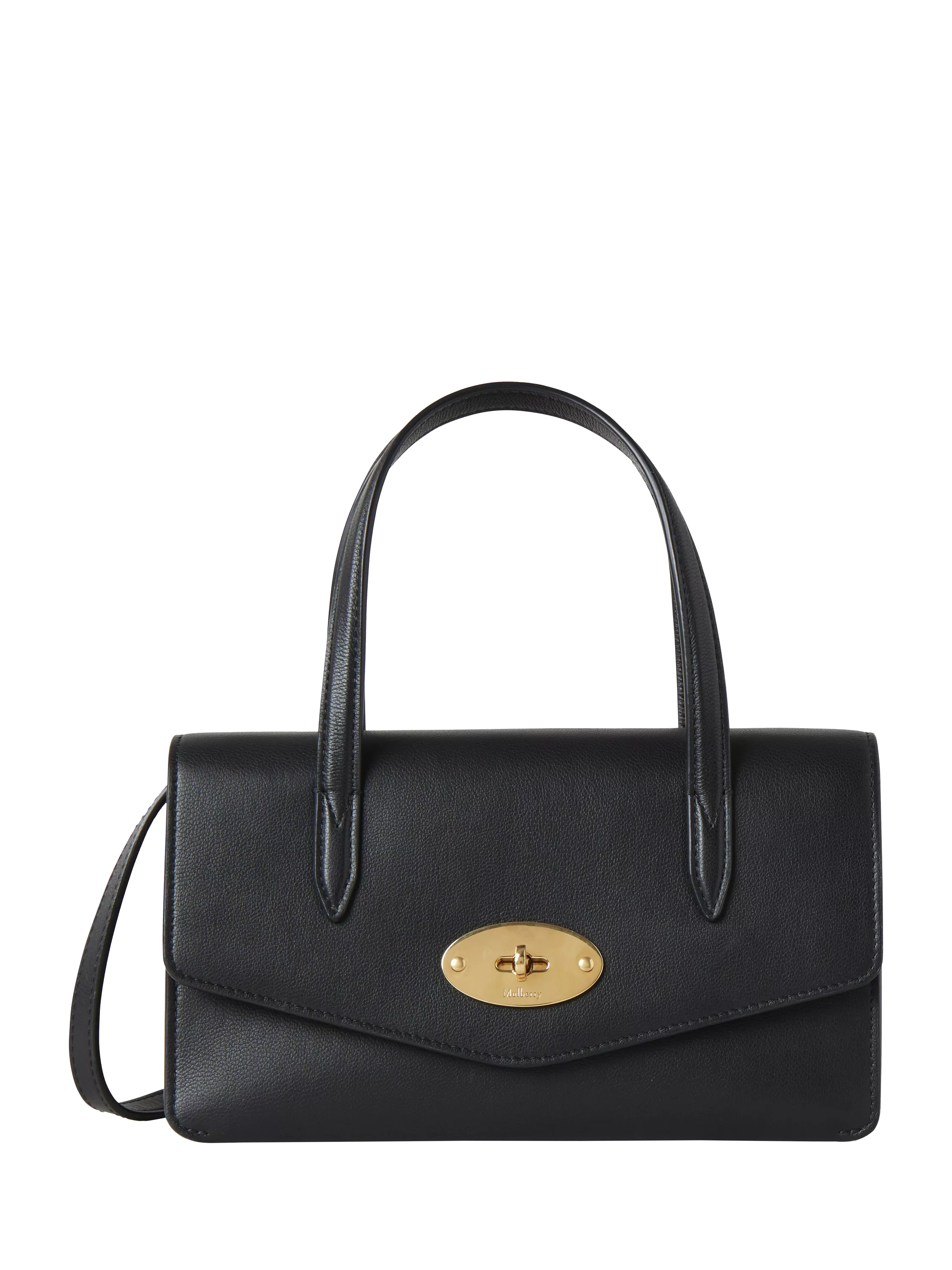 A sleek style perfectly showcasing its iconic Postman's Lock, the Small Darley Top Handle from Mulberry is sized to fit the essentials. Its elegant envelope silhouette can be transformed into a clutch due to its detachable chain strap, with a new Top Handle design for added functionality.