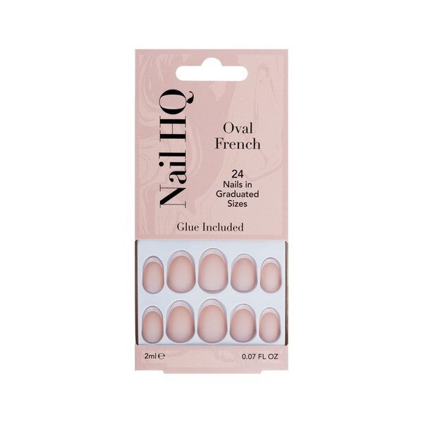 the nail hq oval french false nails are available in a flattering medium length oval shape with 24 graduated sizes and glue included