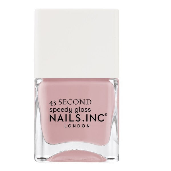 nailsincs 45 second speedy gloss nail polish collection our fastest drying polish to date is designed with your busy day in mind the shade spectrum never compromises on colour quality or wear time the formula is enriched with hexanal which is rich in calcium magnesium to strengthen nails and extend wear time kings cross keeps cool is a dusky pink shade each shade can be applied easily to create an immaculate finish using the patented wide hugging brush exclusive to nailsinc ergonomically designed to work with the shape of the nail and minimize the number of strokes required
