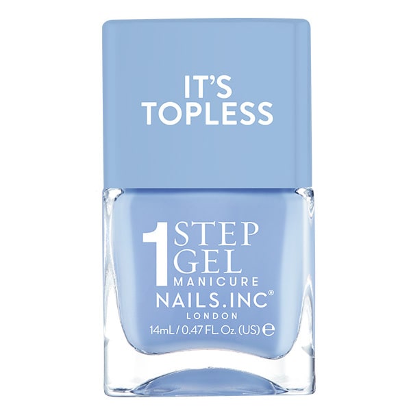 This Nails.INC It's Topless polish delivers a complete manicure solution in one simple step. It features the Kim Sky Blue Crème shade and is formulated for extended performance longevity. This 4-in-1 product simplifies your routine while achieving durable, gel-like results at home.