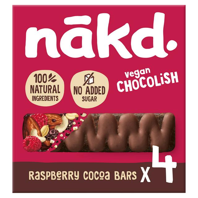 Product details Description Fruit, Nut & Cocoa Bars with Raspberries and Natural Flavourings 100% natural ingredients No added sugar - only natural sweetness Contributes to 1 of your 5 a day Gluten free Suitable for vegans nakd. Raspberry Cocoa Fruit, Nut & Cocoa bars are drizzled with nakd. Chocolish. What's... Read More
