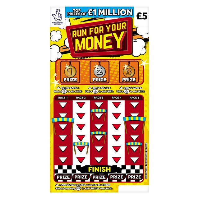 Add a potential instant win to your basket with the National Lottery £5 Run For Your Money Scratchcard Game. This exciting instant win ticket offers numerous opportunities to secure a prize straight away. It is suitable as a small treat for yourself or as an addition to a greeting card gift.