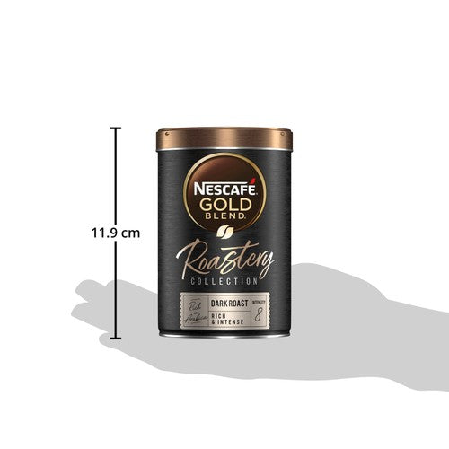 Read MoreExperience the unique and unrivalled flavour of NESCAFÉ GOLD BLEND Roastery Collection. A deliciously dark roasted instant coffee with notes of dark chocolate and roasted nut for a rich and intense flavour. Crafted with high quality coffee beans expertly roasted in two individual batches to bring out the most intense flavours and rich aromas. Crafted with care for moments that matter.