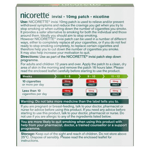 The Nicorette InvisiPatch 10mg provides an effective, once-a-day solution designed to help you manage the cravings associated with quitting smoking.