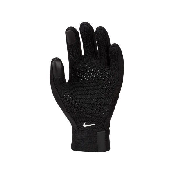 These Nike gloves feature Therma-Fit technology designed to provide necessary warmth during activity sessions. They are constructed from a technical blend of polyester, nylon, rubber, and spandex for overall flexibility. The construction ensures a secure fit while offering enhanced dexterity for young wearers. A textured palm area is included to increase tactile grip when handling items.