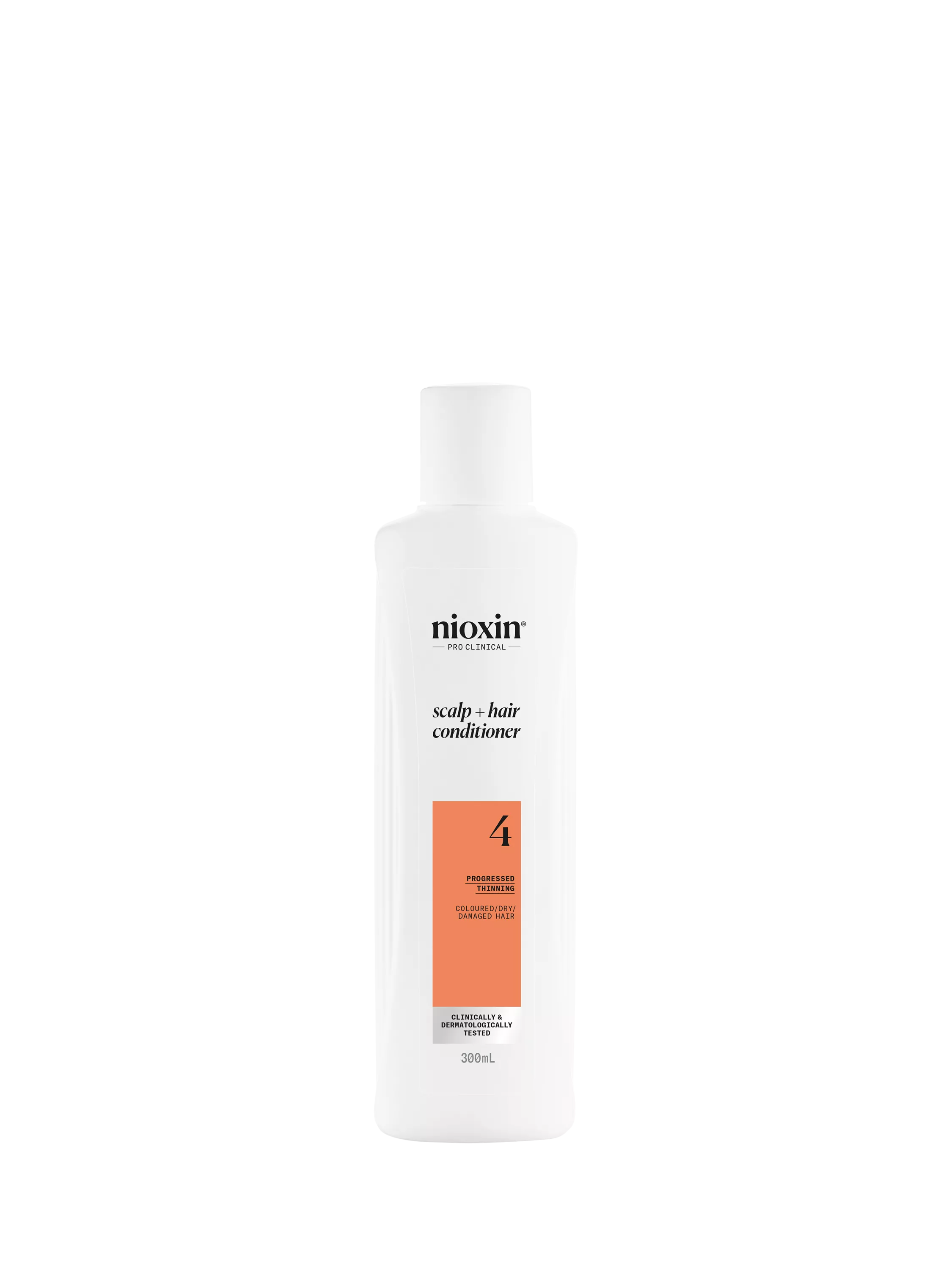 Nioxin System 4 Scalp + Hair Conditioner - Hair Thickening Conditioner for coloured, dry and dramged hair with progressed thinning is a lightweight conditioner that helps provide hair resilience, hydrates scalp and hair from root to tip. Clinically and dermatologically tested.
