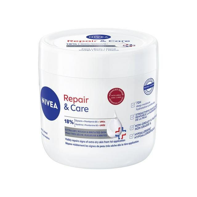 Discover Nivea Repair & Care Cream, formulated for extremely dry and irritated skin. This specialised product instantly calms discomfort while actively repairing visible dryness starting from the initial application. It is designed to work hard to restore the skin's natural resilience.