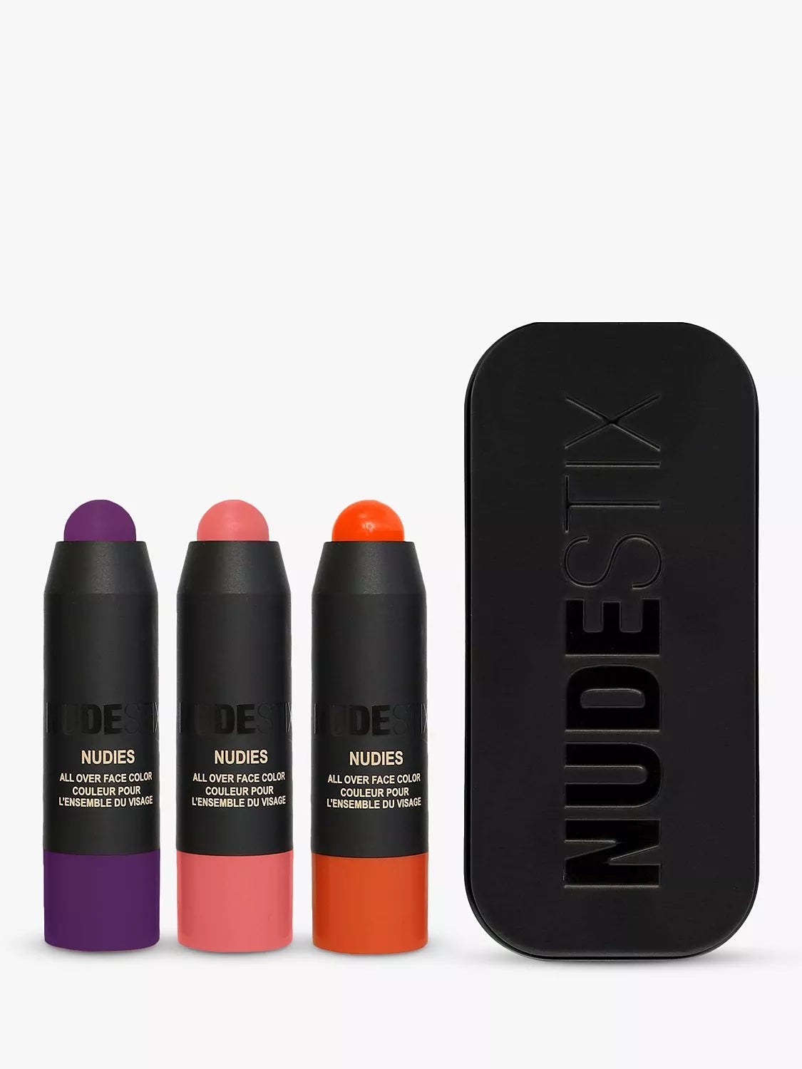 Our Trendy Bliush Kit is an exclusive, limited-edition three-piece mini kit containing Nudestix iconic Nudies blush in two textures. Mix and match to create fresh, trendy blush looks for face, lips and eyes that will take you from cool and casual to all-out nude glam. Conveniently packaged in a mini tin with a mirror to apply anytime and anywhere, just stripe and blend! The Nudestix nude blush Trendy three-piece Mini Kit is all you need to create your cheeky looks. For a soft and subtle, matte-satin finish, try Nudies Matte Lux in Rosy Posy. Add a pop of sunny fresh colour, Nudies Matte Blush in Picante or be bold and try the ‘purple blush’ Tik Tok trend with Nudies Matte Blush in Moodie Blu for that 'snatched' cheek to instantly brighten your complexion.