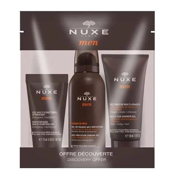 Read MoreProduct Information nuxe men travel kit includes essentials like shaving gel moisturizer and shower gel all infused with natural ingredients for a refreshing and invigorating grooming routine on the go
