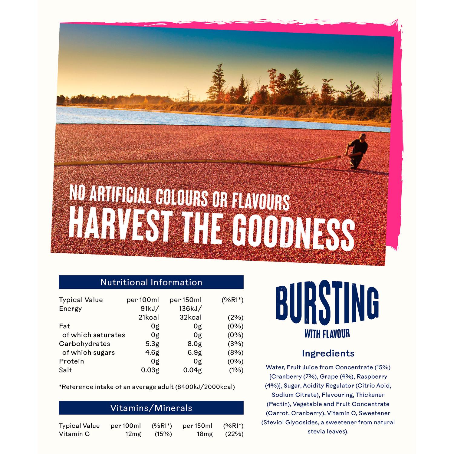 • Offers a balanced flavour of cranberry and raspberry in one convenient carton.