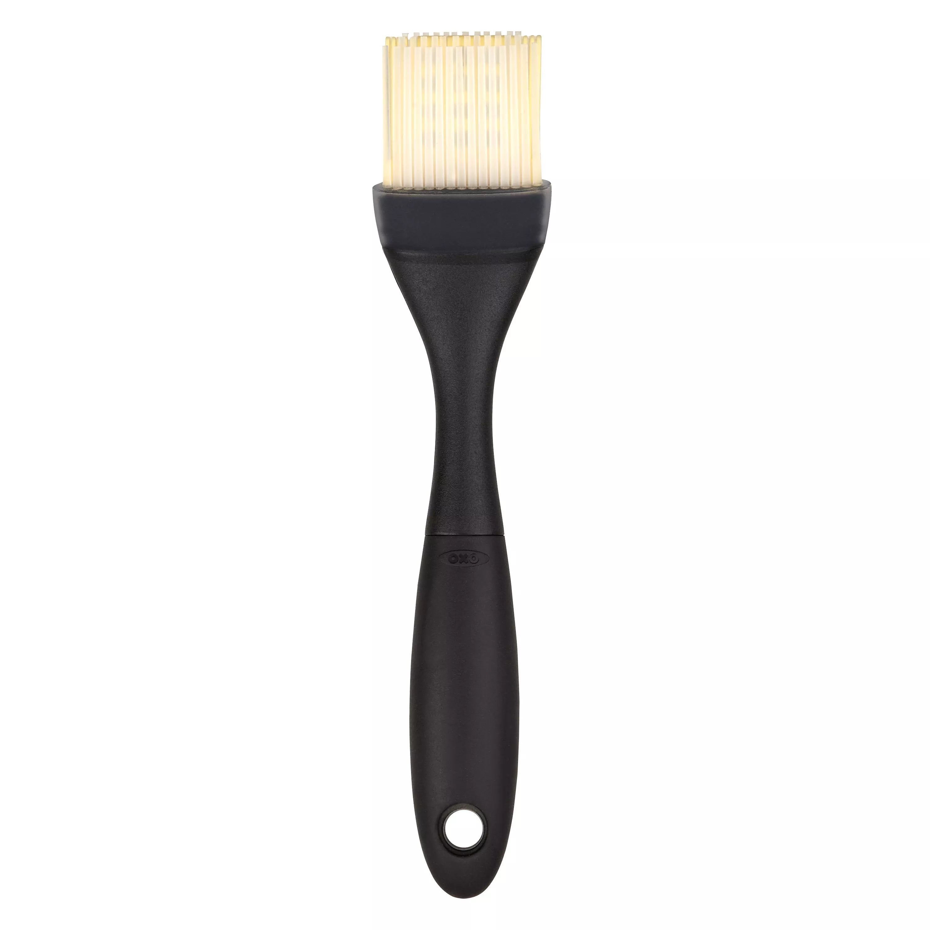 A clump-resistant small pastry brush from OXO Good Grips that's easy to clean. The silicone basting brush's multi-layered bristles work as if they are natural but have heat resistance and quick-clean convenience. Gaps in the centre bristles hold liquid as you transfer. Tapered outer bristles let you brush delicate pastries with ease and it has a non-slip grip.