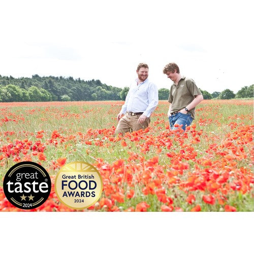Roaming freely across our family farm in Staffordshire, our cockerels enjoy a natural diet, supplemented with the finest maize and Omega-3 enriched corn. We never use growth enhancers or routine antibiotics - just slow, natural rearing for incredible taste and texture.