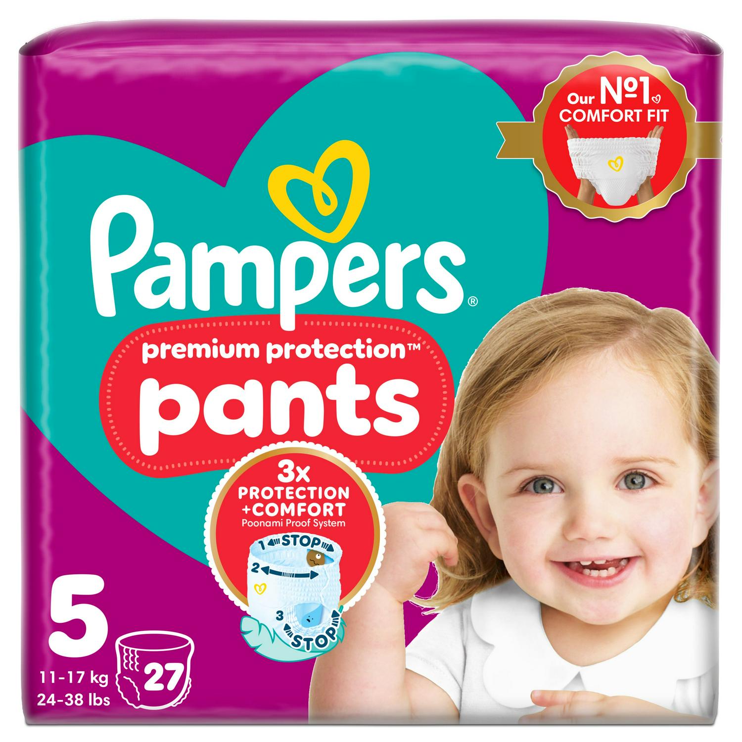 As your baby becomes more active, you want a nappy that provides a comfortable fit and reliable protection to keep up with any move. Give your baby Pampers' best skin comfort and leakage protection with Pampers Premium Protection Nappy Pants. 2x wider* soft leg cuffs protect against red marks and leaks around the leg, 360° ultra-soft waistband flexes to your wriggly baby's shape as he/she explores the world, and our unique Stop & Protect Pocket helps prevent leaks at the back. Like all of our nappy pants, Pampers Premium Protection Nappy Pants are easy to change even when your baby is moving around: just one pull to put on, tear the sides for easy removal, roll up and secure with the tape for easy disposal. Just like you, Pampers put your baby’s safety first: Pampers Premium Protection Nappy Pants are dermatologically tested and contain 0% EU perfume allergens (as regulated in the EU Cosmetics Regulation No 1223/2009). They are approved by the dermatologists of the Skin Health Alliance and tested and certified according to Standard 100 by OEKO-TEX. Want to know more about the components Pampers uses? Visit pampers.co.uk (*vs before) Use with Pampers baby wipes.