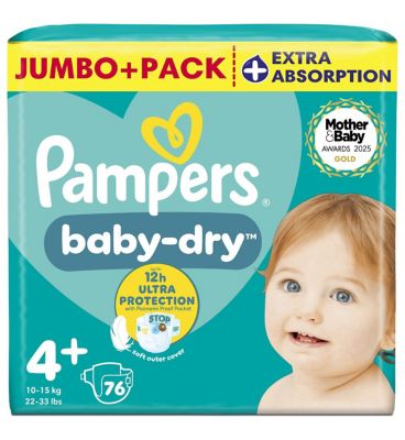 Pampers size 4 Baby Dry nappies jumbo 9-14kg 76s