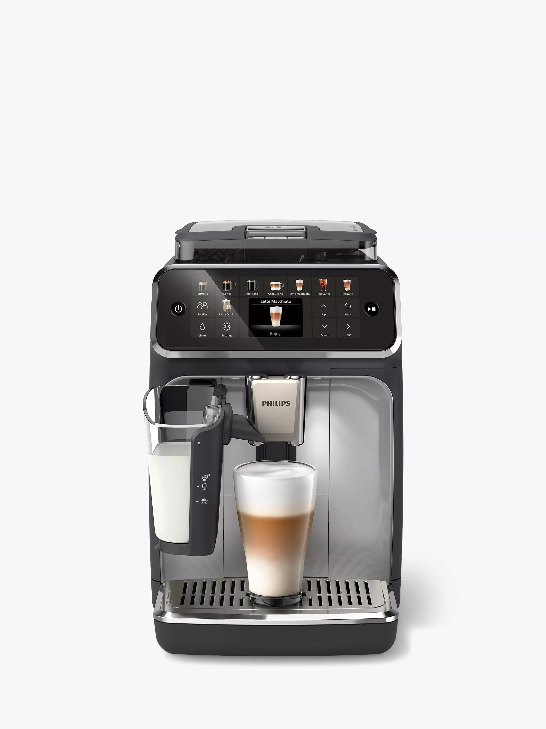 Indulge in cafe-quality coffee at home with the Philips 5500 Series EP5546/70 LatteGo coffee machine. This bean-to-cup machine effortlessly creates a wide variety of hot and iced coffee beverages, from lattes to iced cappuccinos, with a remarkably quick and easy-to-clean milk system.