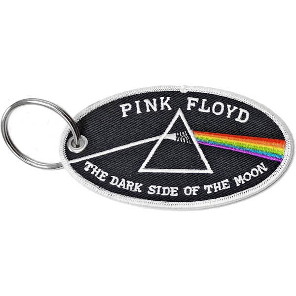 material metal polyester design album artwork contrast border embroidered logo oval text double sided loop split ring 100 officially licensed
