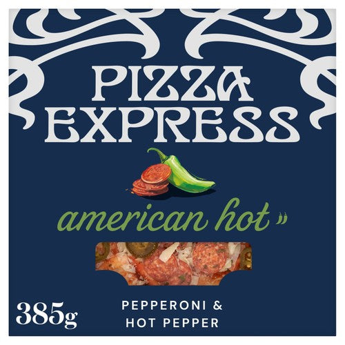 Pizza Express delivers their popular Classic American Hot pizza, allowing you to enjoy restaurant quality at home tonight. This frozen pizza features a traditional base layered with rich tomato sauce and creamy mozzarella cheese throughout the entire surface. The combination of savoury pepperoni and distinct jalapeño peppers provides a flavour profile with moderate heat, ideal for a comforting evening meal at your convenience.