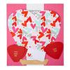 - Features vibrant heart motifs and a festive pink and red colour scheme in its design.