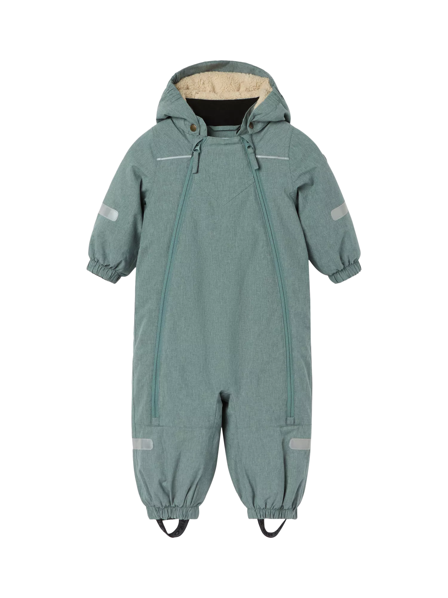 This wind and waterproof overall will keep baby dry and cosy whatever the weather. All outer seams are taped to keep out the rain while the soft teddy fleece lining will keep baby warm. Features include elasticated waist and soft, rib cuffs for added comfort, a hood with elastic edging for the best fit and two zips with chin guards for quick and easy dressing.