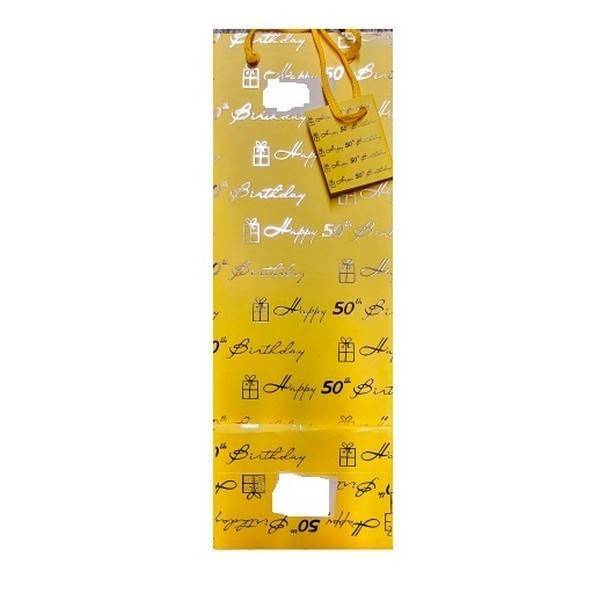 Secure your thoughtful gift presentation using this specially themed 50th birthday bottle bag.