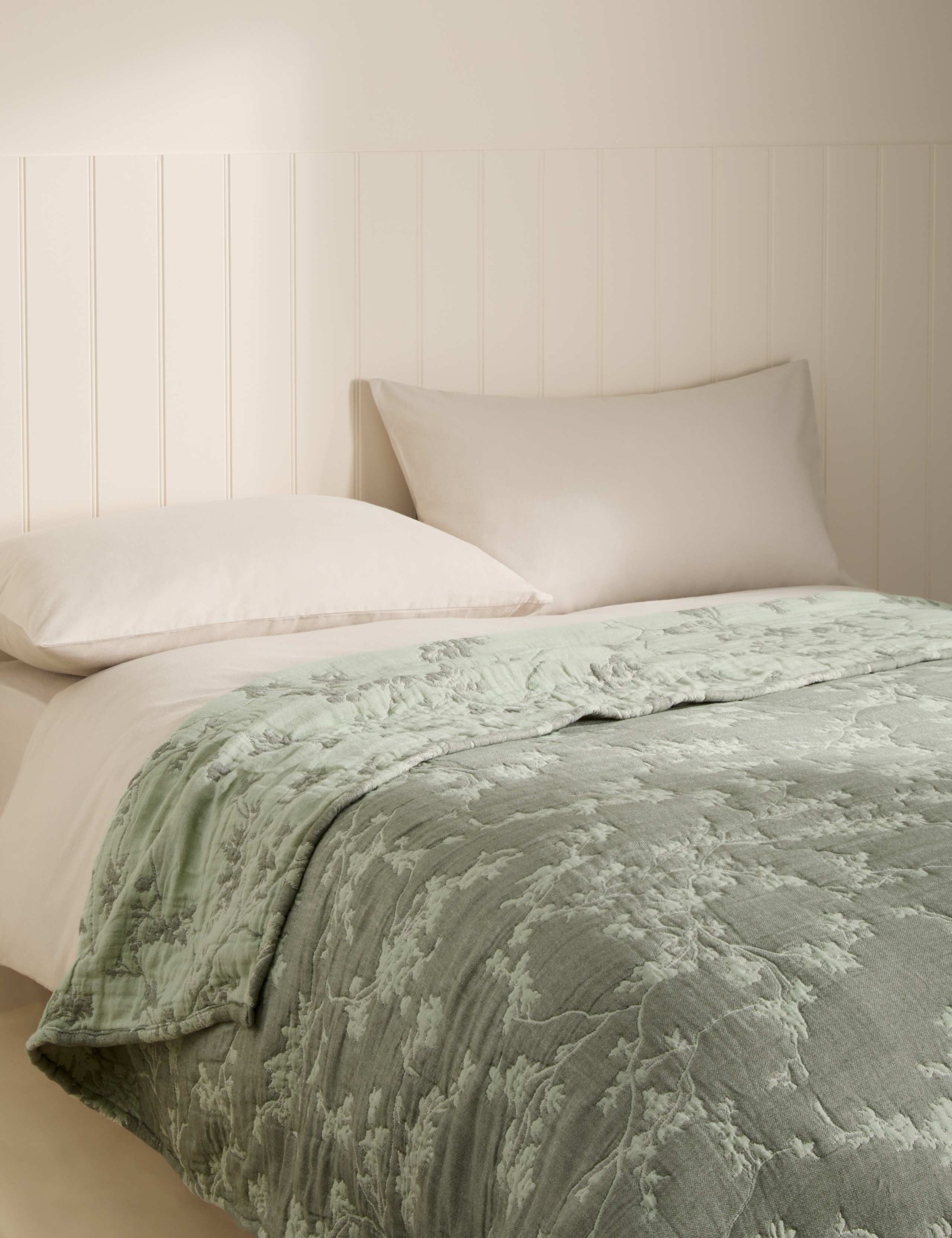 This elegant floral bedspread is designed to introduce texture and pattern to your bedroom décor effortlessly. Crafted completely from breathable pure cotton, this textile provides comfort as a decorative layer during warmer seasons. The beautiful trailing cherry blossom jacquard weaves a tactile, tonal pattern throughout the design.