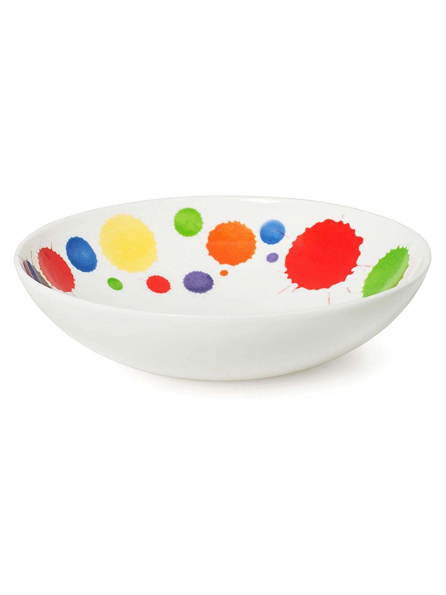 This colourful bone china supper bowl is part of the new Pure Prue collection of tableware from British TV personality, cook and author Dame Prue Leith. The artwork was created with Prue's collaboration by dropping coloured inks onto textured paper, the splats contrast beautifully with the bright white bone china creating a stunning piece of drinkware. The Pure Prue collection of ceramic tableware also includes mugs, side & dinner plates and a spiral rainbow platter, all in bold hues in abstract patterns. The bone china tableware is dishwasher, freezer and microwave safe, perfect for everyday use.