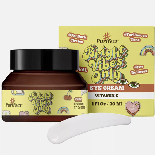 [FOR DARK CIRCLES & DULL UNDER-EYE] Bright Vibes Only is loaded with vitamin c that will help reduce dark circles and discolorations around the eyes. This eye cream addresses dullness and refine skin tone. [KEY INGREDIENTS] include Vitamin C that reduces dark circles because it aids in decreasing the visibility of blood vessels and strengthening the delicate skin around the eyes, and Rose water that helps improve skin cell turnover rate and protects under-eye area against signs of premature aging. [DAY & NIGHT EYE CREAM] For best results, use after cleanser and serums but before moisturizers. Use AM and PM daily. This highly active treatment aims to leave your under-eye more refreshed, vibrant, and brighter. [FOR CONSCIOUS CONSUMERS] If you like natural products with no harsh chemicals, this is the perfect eye serum for you. This product does not contain synthetic colors, parabens, sulfates, phthalates, etc. or anything you do not want near your skin. [SKINCARE INNOVATION] All of Purifect products are dermatologist-tested, made in U.S.A., suitable for all skin types, Leaping Bunny Certified for cruelty-free, NaVOBA certified for a veteran-owned organization, and formulated without any harsh chemicals.