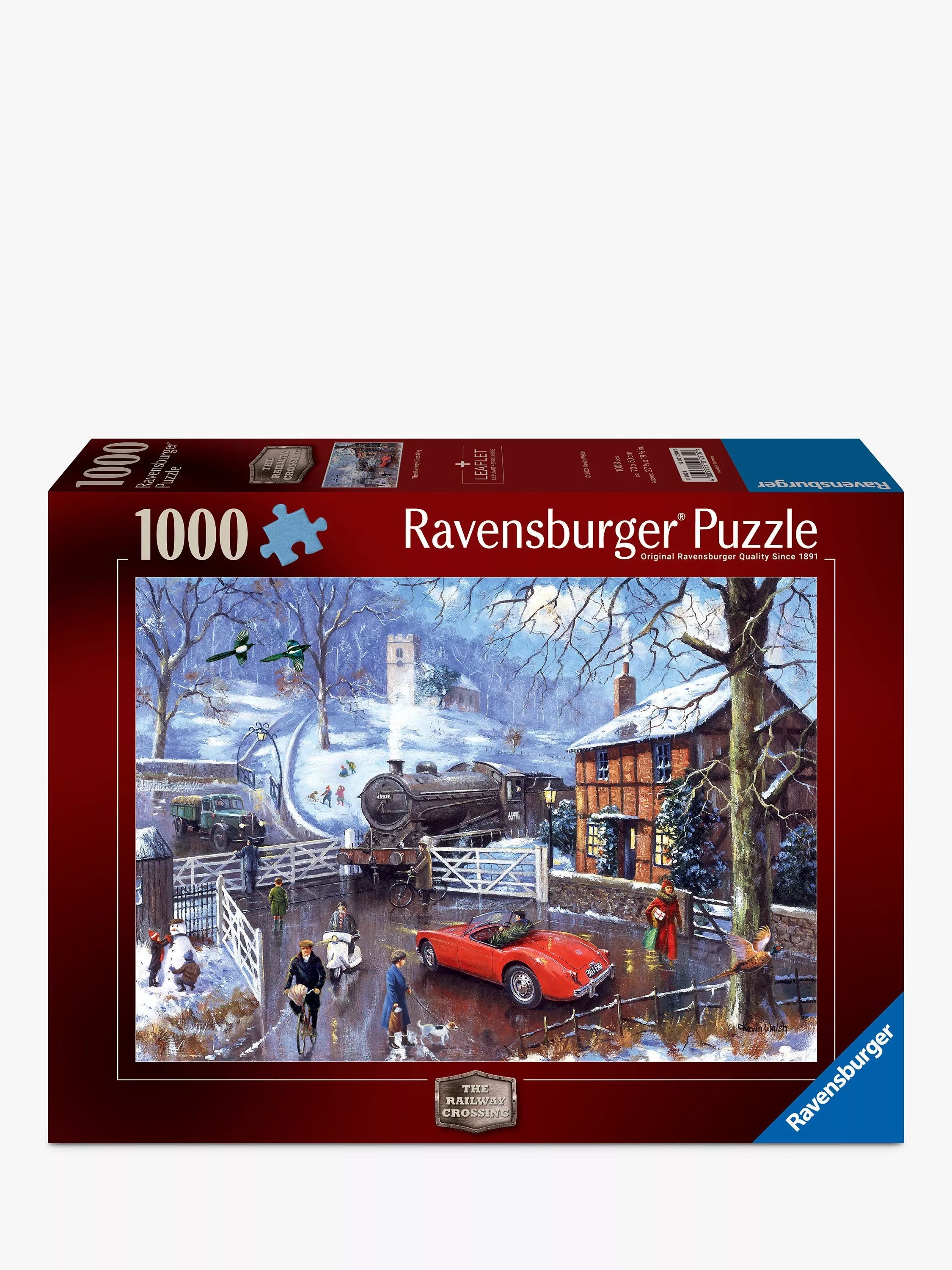 In the centre of this 1000-piece jigsaw puzzle is a quaint village blanketed in pristine snow, creating a serene backdrop for the seasonal festivities. A steam train chugs through the heart of the village, billowing white puffs of steam into the cold, crisp air. It adds a touch of nostalgia to this wintry landscape. At the village gates, a truck patiently waits for them to open, laden with cargo to be delivered. The scene is filled with activity as people pedal along on bicycles, take leisurely strolls with their dogs, and children excitedly build a snowman. Just in front of the church, children are seen gleefully sledging down a snow-covered hill. And in the midst of this idyllic village, a pheasant takes flight, a symbol of the freedom and wonder of the season.
